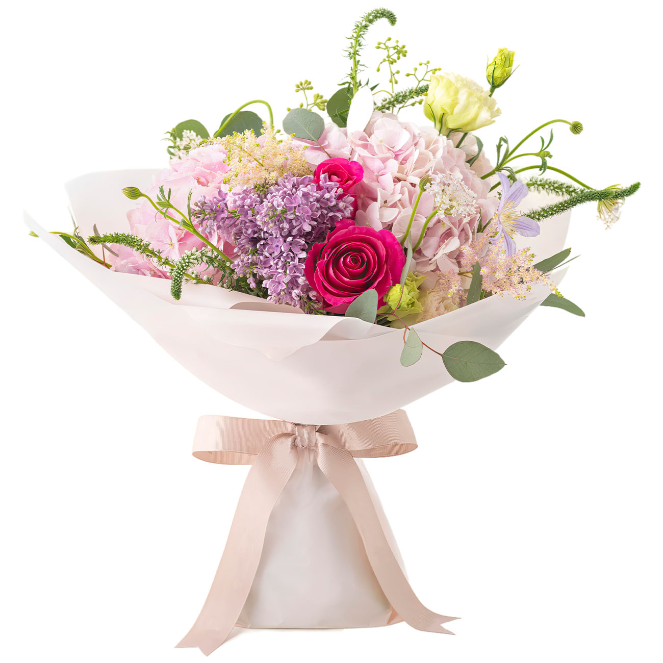 | Состав | Гортензии, Розы, Сирень, Эвкалипт, Эустомы |