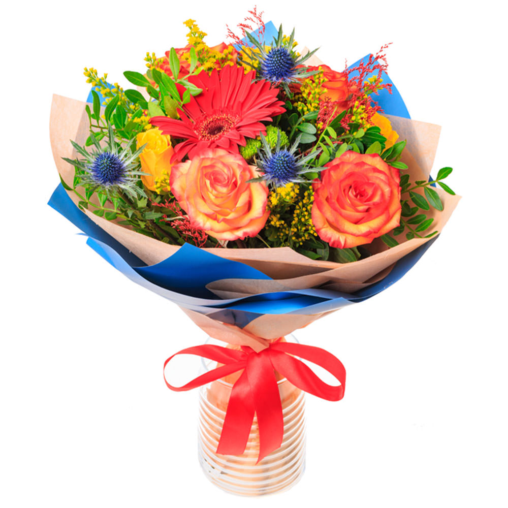 | Состав | Герберы, Розы, Эрингиум |
