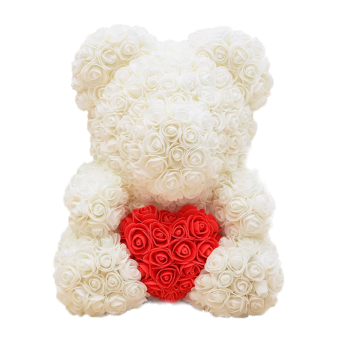 Мишка из роз бежевый с красным сердцем (40 см) с доставкой по г Верхняя Пышма: вы можете заказать подарок в интернет магазине «Флормания» по цене за 5990 руб.