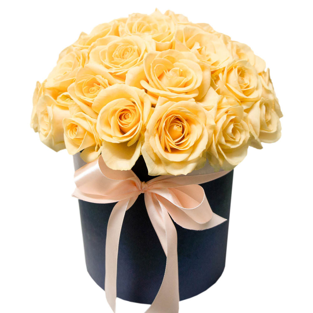 Цветы в коробке «Кремовые розы» с доставкой по г Верхняя Пышма: вы можете заказать букет в цветочном супермаркете «Флормания» по цене от 3390 руб.