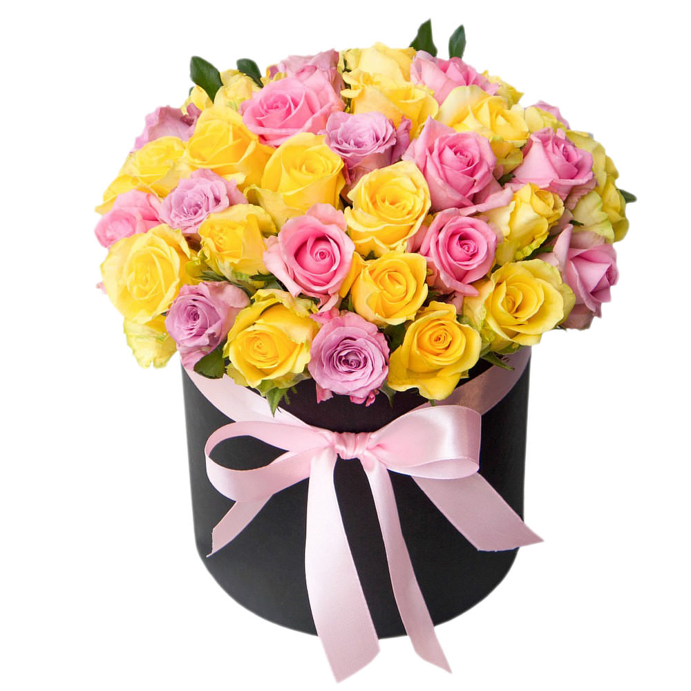Цветы в коробке «Розы ассорти» с доставкой по г Верхняя Пышма: вы можете заказать букет в цветочном супермаркете «Флормания» по цене от 3390 руб.