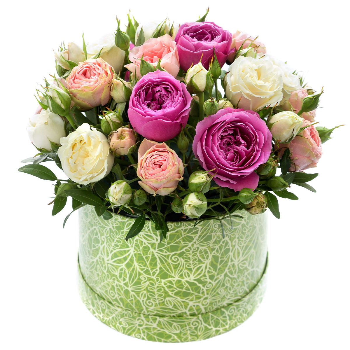 Цветы в коробке «Утренний жемчуг» с доставкой по г Верхняя Пышма: вы можете заказать букет в цветочном гипермаркете «Флормания» по цене от 3390 руб.