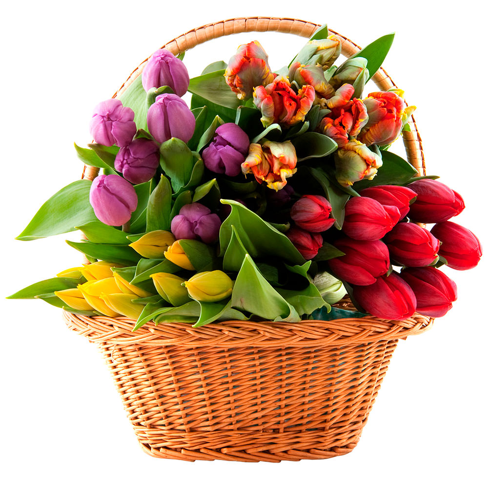 Цветы в корзинке «Микс тюльпанов» с доставкой по г Верхняя Пышма: вы можете заказать букет в гипермаркете цветов «Флормания» по цене от 3890 руб.